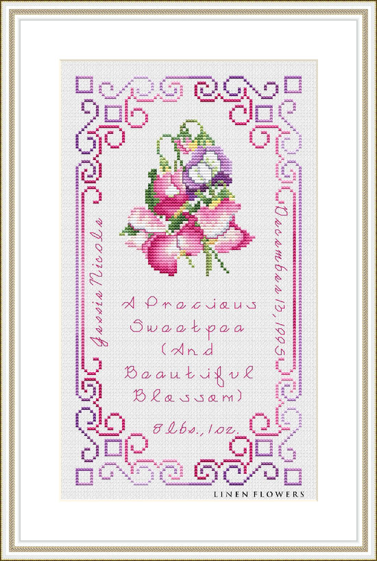 Design size: Sampler: 78 w x 141 h. Inner Portion: 50 w x 99 h.